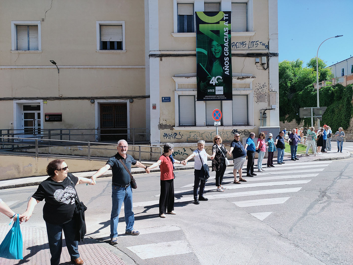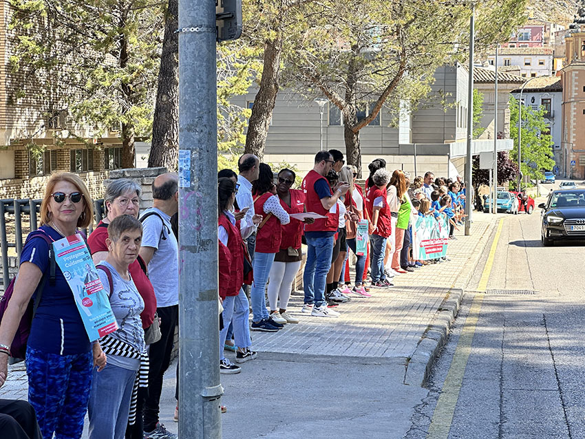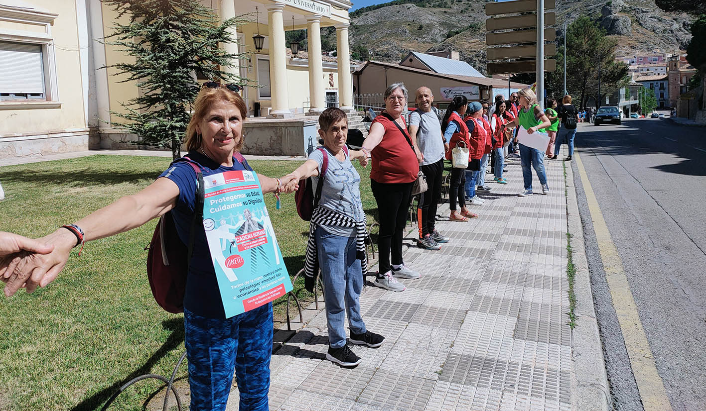 Esta mañana la residencia provincial Sagrado Corazón de Jesús ha sido el epicentro desde el que se ha formado una cadena humana con más de 300 personas que han unido sus manos en las calles de Cuenca para visibilizar el abuso que se produce hacia las personas mayores. Este acto ha estado organizado por la Diputación de Cuenca y la Unión Democrática de Pensionistas en colaboración con el colegio Federico Muelas, Cáritas y Cruz Roja.